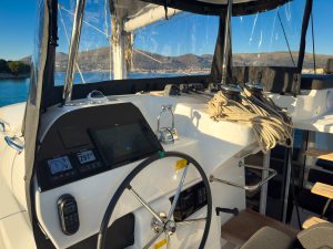 | + Cockpit/stern, outside shower | + Dinghy with outboard engine – High. CL340, Honda 20HO |